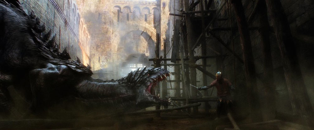 Another attraction is that the adult leads of the picture are Jeff Bridges and Julianne Moore. Bridges plays a righteous witch-hunting “spook” (he’s also a Knight of some secret sacred order or another) while Moore plays a near-omnipotent witch who’s going to use the once-in-a-hundred-years “night of the blood moon” to make herself 100% omnipotent. Of course these two characters have a romantic back-story. Of course they do. Since every other film critic writing about this movie is going to make some kind of “I didn’t think the sequel to ‘Big Lebowski’ would be THIS weird” joke, I’ll spare you my effort. It is, however, a pleasure to see The Dude and Maude in a clinch once more, even if Bridges’ mumble-mouthed, grizzled hero is more like his “True Grit” Rooster Coburn crossed with Richard Harris in “Camelot,” had Richard Harris been 70 in “Camelot.” In other words, it’s a truly eccentric performance, and why not. As for Moore, she looks gorgeous and slithers with enough menace that you can almost convince yourself that her dragon-morph isn't a special effect.